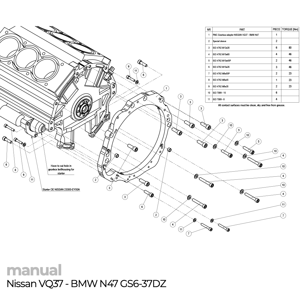 !!! Детали PMC Motorsport предназначены для автоспорта и использования на гоночных трассах. Установку должны выполнять профессионалы с использованием подходящих инструментов в надлежащим образом оборудованных мастерских!!! Адаптер коробки передач изготовлен из алюминия и полностью подлежит переработке. !!! Для подключения требуется нестандартный маховик!!!